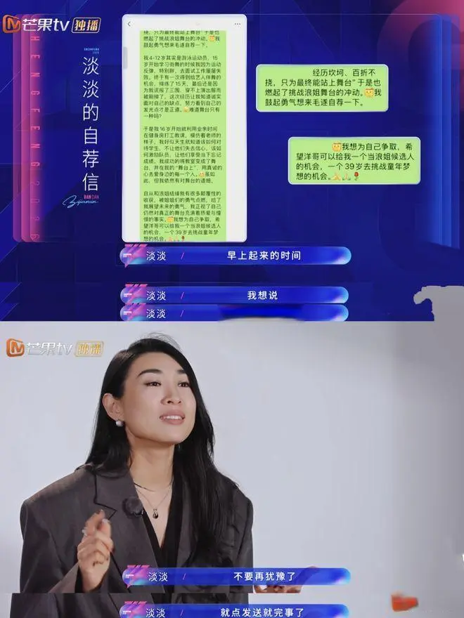上一季的舞台总监淡淡,毛遂自荐写推荐信,上台热舞“啥是行走的浪姐态度”。